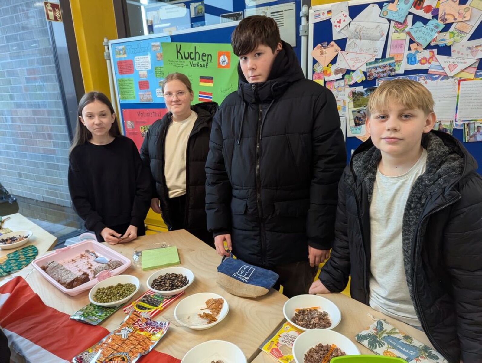 Besonderer Dank gilt den Klassen 7f und 7h, die sich mit großem Einsatz an der Aktion beteiligt haben. Durch ihren Verkaufseifer und die große Unterstützung aus der Schulgemeinschaft konnte eine beeindruckende Spendensumme von 355,88 Euro eingenommen werden. Mit diesem Betrag konnten in diesem Jahr gezielt Fleisch und Hühnchen für das Weihnachtsessen an der thailändischen Schule finanziert werden. Für viele der dortigen Kinder ist das gemeinsame Essen ein ganz besonderes Ereignis – und oft eine der wenigen Gelegenheiten im Jahr, eine reichhaltige und vollwertige Mahlzeit zu erhalten.